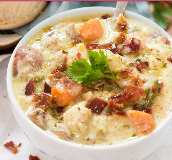 - Sprinkle with parsley and crumbled bacon and serve, (preferably with biscuits!)